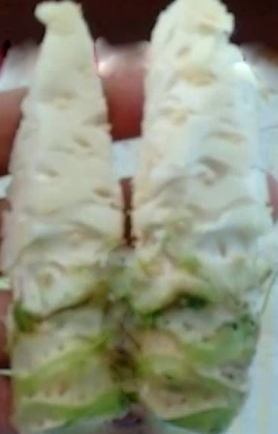 Cascas de ½ abacaxi cortadas em pedaços.